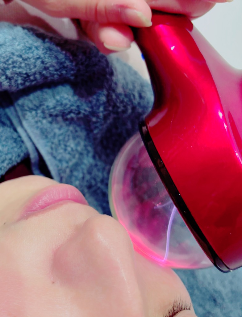 ベッドに寝て、冷却吸引カップをセットしたら