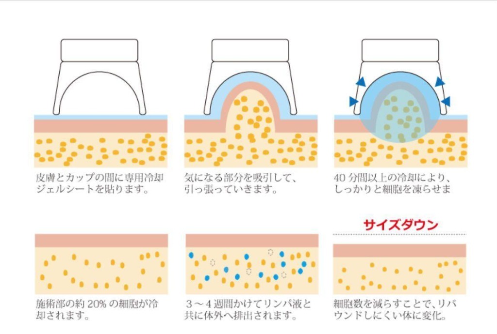 低温で冷やすことにより脂肪細胞自体が減るため、長期にわたって効果が持続します。